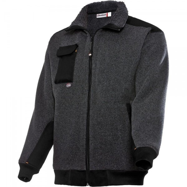Veste / Blouson col camionneur avec ouverture frontale zippée. Munie de 2 grandes poches basses zippée et d'une poche poitrine idéale pour le téléphone, elle est aussi munie de poignets élastiqués ainsi que de renforts aux épaules, avant bras et entrées de poches.