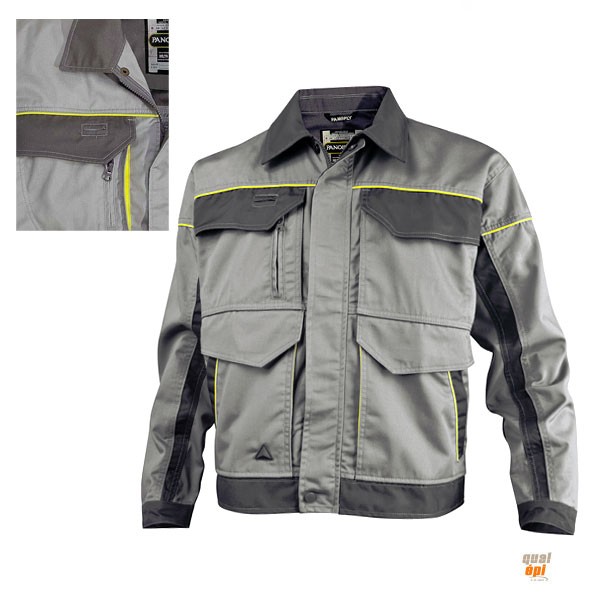 Veste de travail MACH2 CORPORATE polyester / coton. Manches : Aération sous bras par oeillet. Serrage : Au bas par pressions sur les côtés dos. Soufflet d'aisance dans le dos. Porte-badge. Ouverture passe-fils audio. 6 poches.