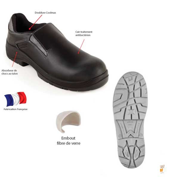 Chaussures de cuisine noir confortable et resistante marque Gaston Mille