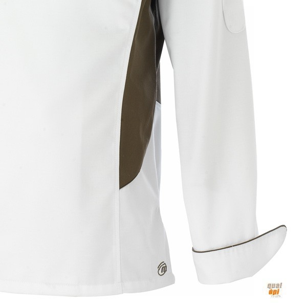 Matière de la Veste de cuisinier : Satin 50%, coton 50% polyester blanc - Sergé 65% polyester 35% coton, Guess brown - Maille piquée polyester blanc