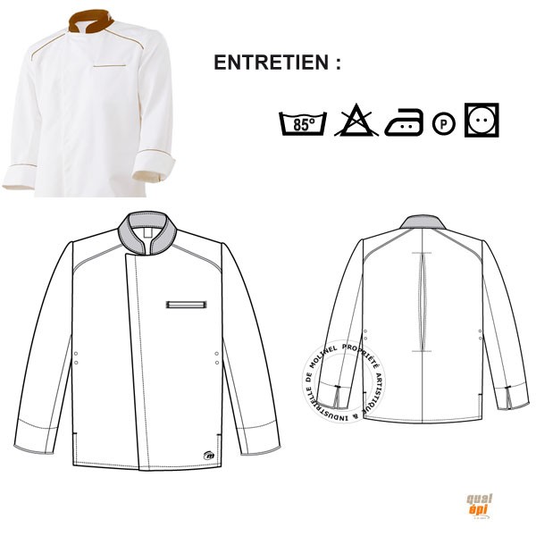 Veste de cuisinier Cookspirit liseré guess brown à manche longue avec col officier