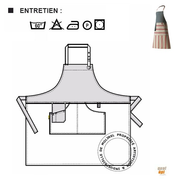 Tablier à rayure beige et rouge pour serveur ou sommelier ou cuisinier